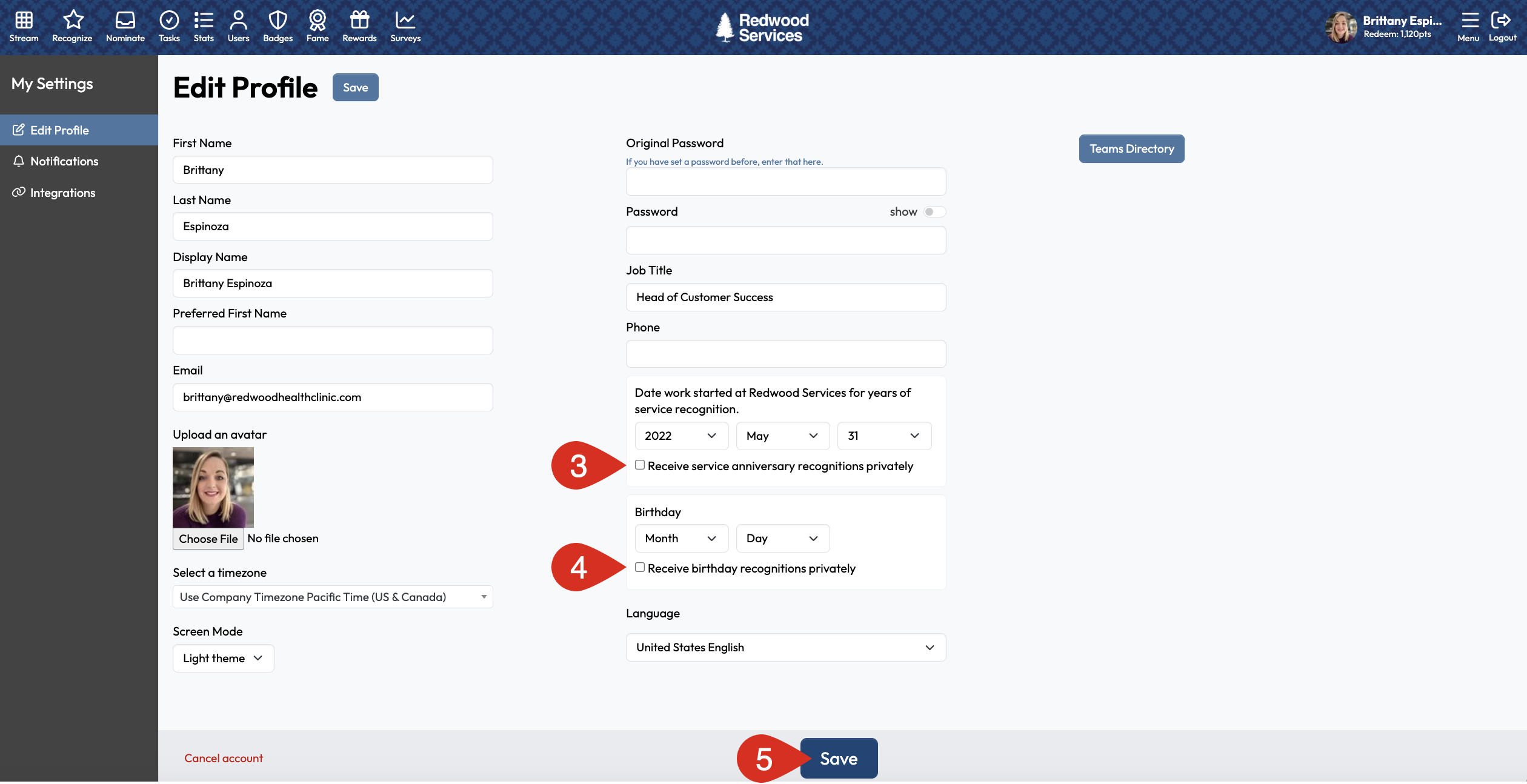 - Check the box under your birthday to 'Receive birthday recognitions privately'